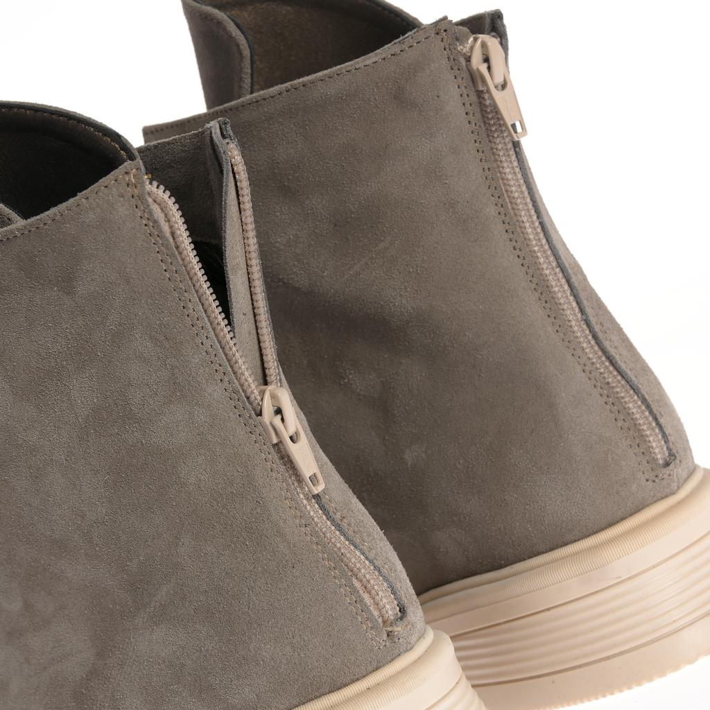 Botine fashion din piele intoarsa gri, prevăzute cu șiret și fermoar la spate pentru fixare ușoară. Acoperire medie la gleznă și talpă joasă din cauciuc pentru confort zilnic.