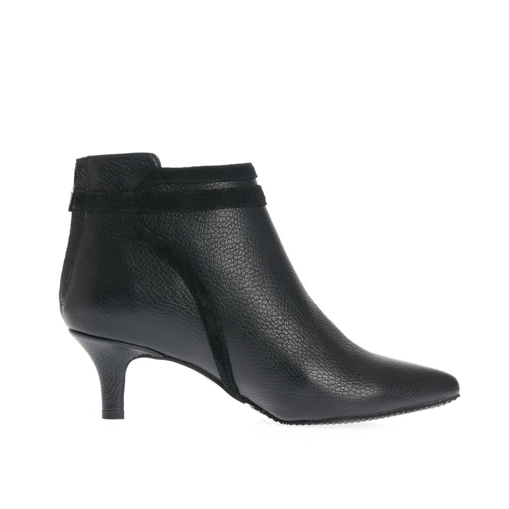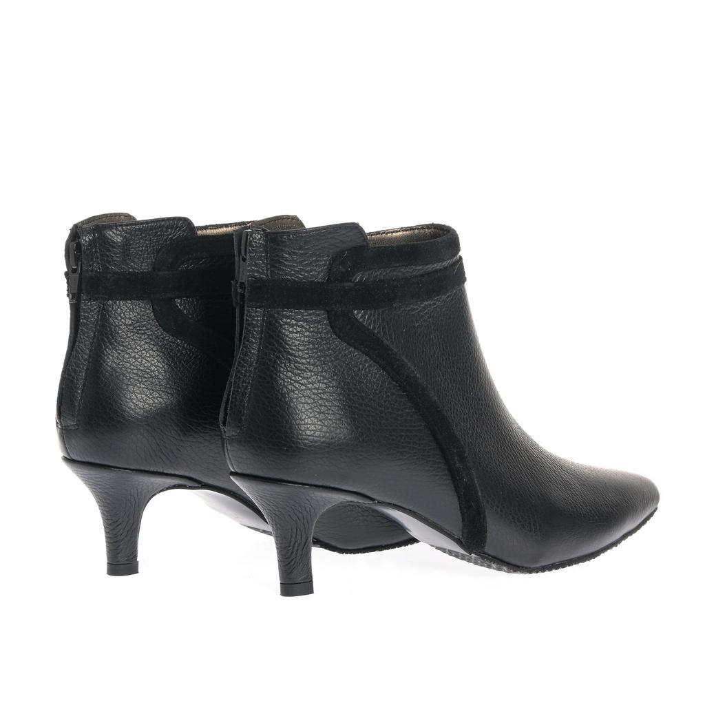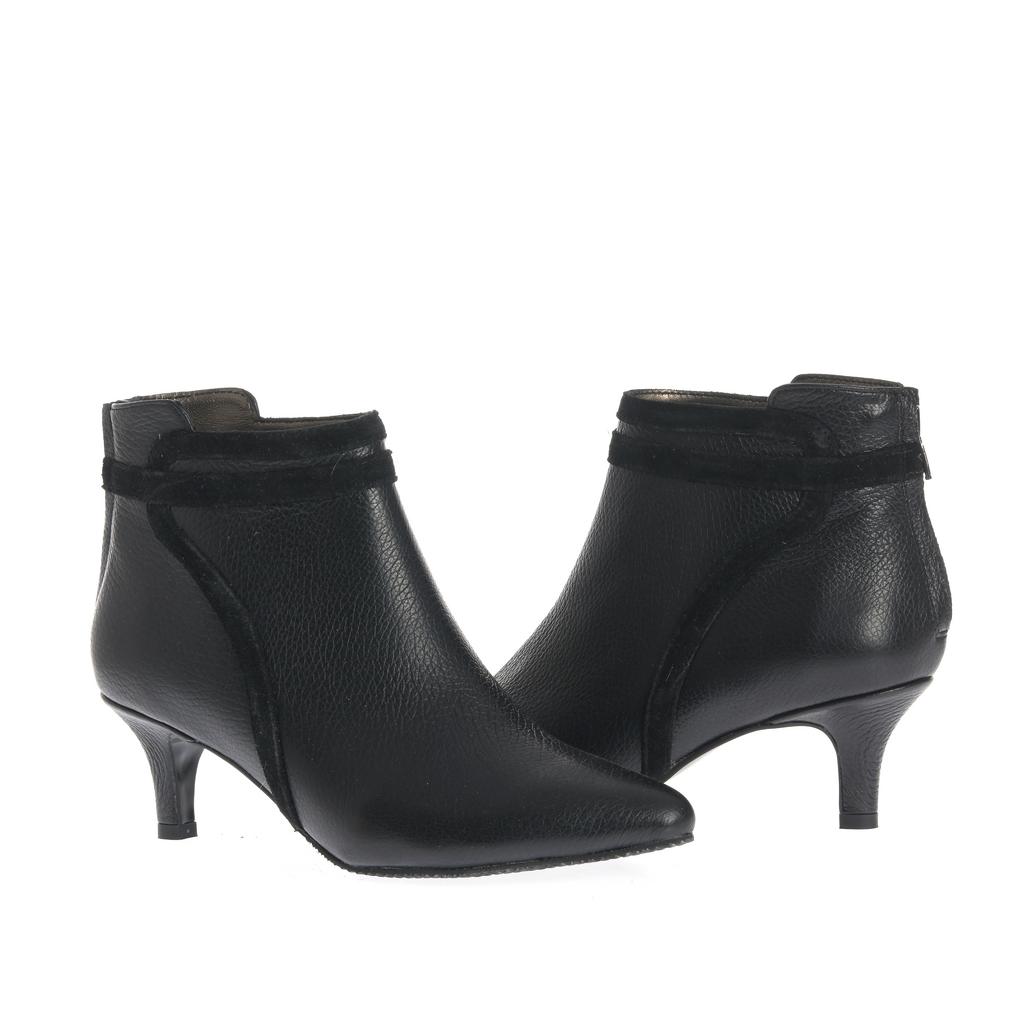 Botinele negre Ioana sunt realizate din piele și au un toc mic tip kitten confortabil. Se potrivesc perfect pentru un look elegant, având un design cu vârf ascuțit și detaliu decorativ din piele întoarsă.