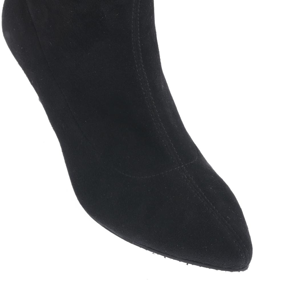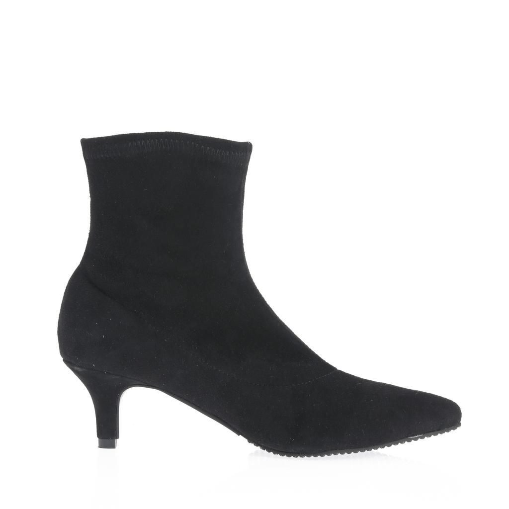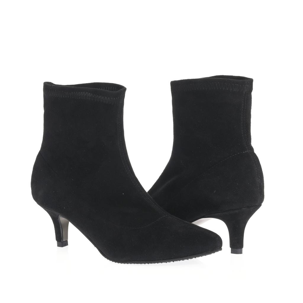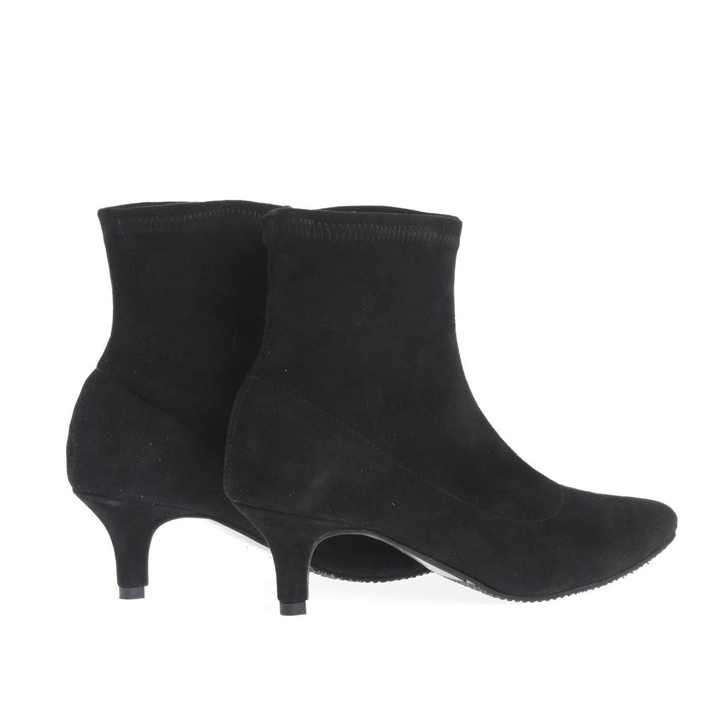Botinele Lavinia negre sunt realizate din piele întoarsă de înaltă calitate, oferind un aspect rafinat pentru ocazii casual sau elegante. Croiala cu acoperire medie a gleznei și vârful ascuțit adaugă un aer sofisticat, iar toc kitten oferă o înălțime confortabilă, perfectă pentru un stil feminin și ușor. Talpa din cauciuc previne alunecarea, iar închiderea slip-on asigură o încălțare rapidă și comodă. Cusăturile vizibile accentuează designul modern și atent finisat al acestor botine versatile, ideale pentru orice garderobă.