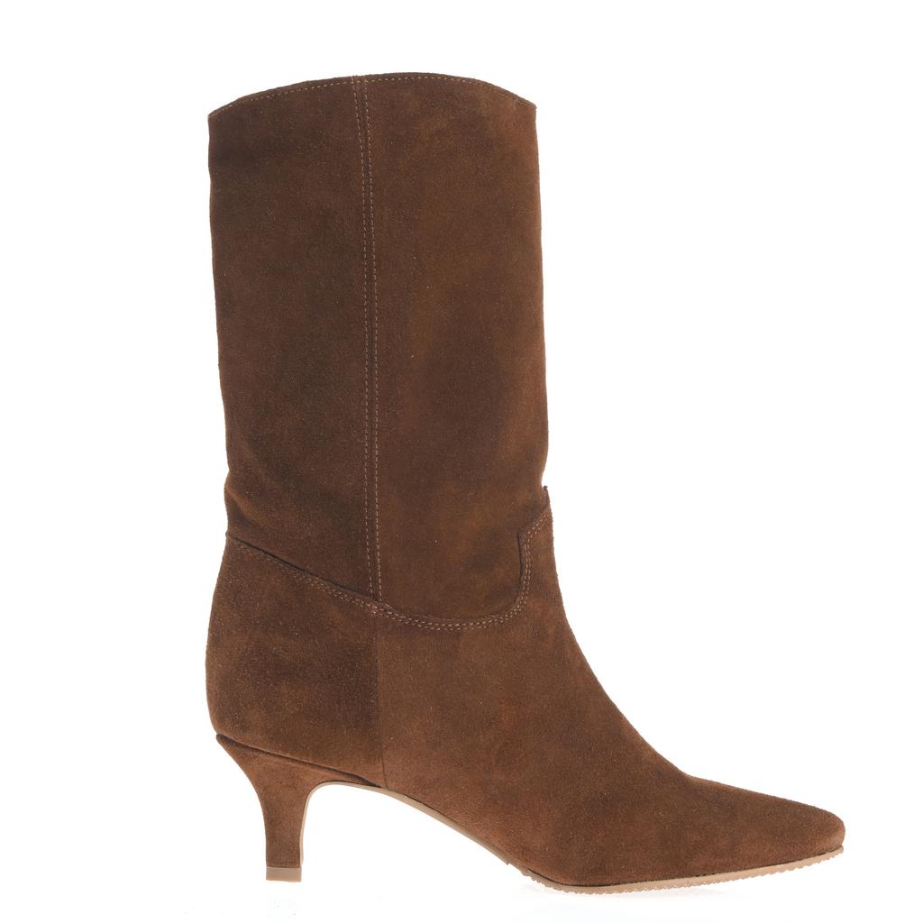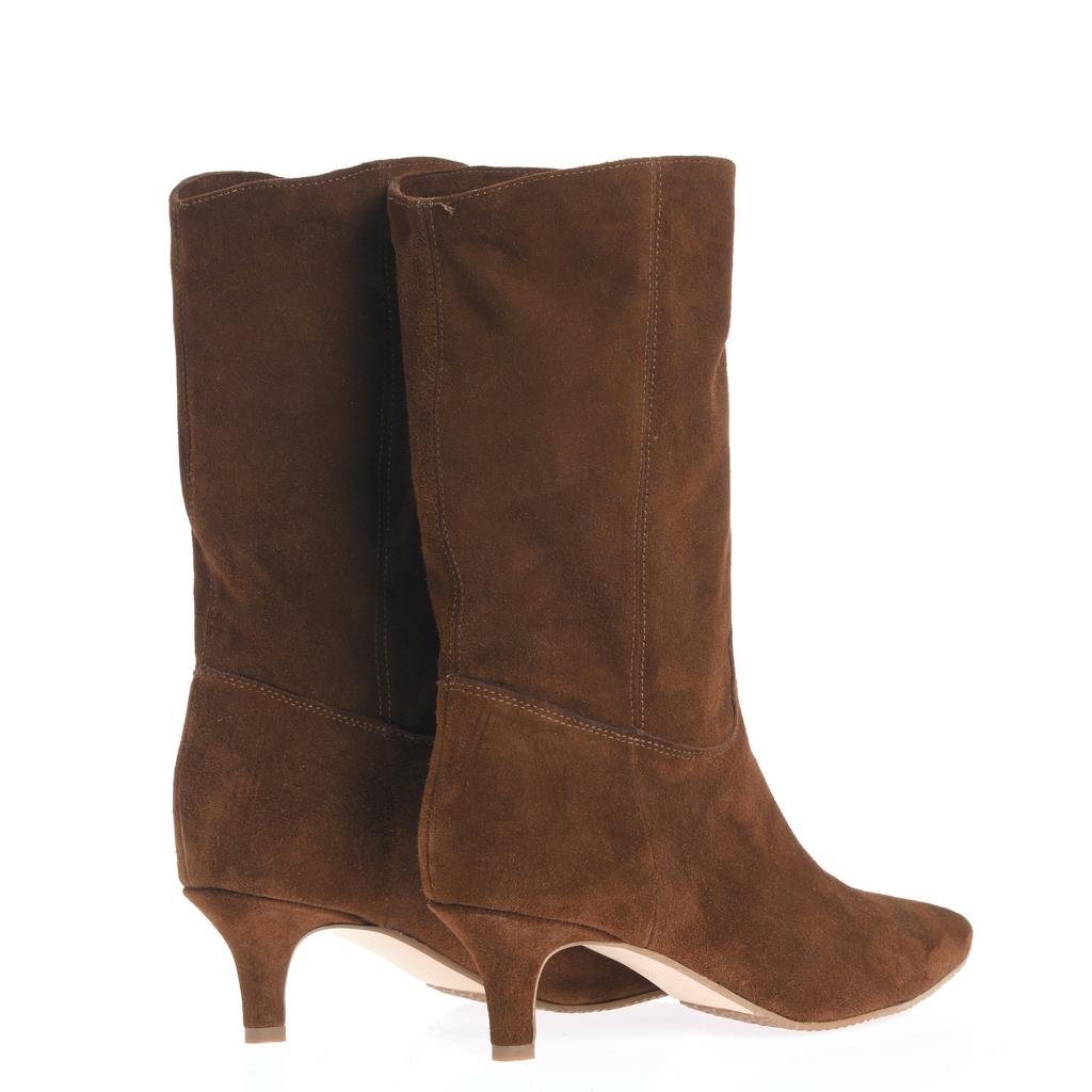 Descoperă confortul și eleganța cu cizmele cu toc Zoe, realizate din piele de suede maro de calitate superioară. Cu un toc kitten rafinat și talpă subțire, acestea adaugă un plus de stil ținutelor tale fashion. Croiala cu gleznă înaltă și vârful ascuțit oferă un aspect modern și sofisticat, iar închiderea slip-on facilitează încălțarea rapidă. Cusăturile vizibile accentuează designul atent și finisajul produsului, făcând aceste cizme ideale pentru ocazii ce cer o ținută chic și confortabilă.