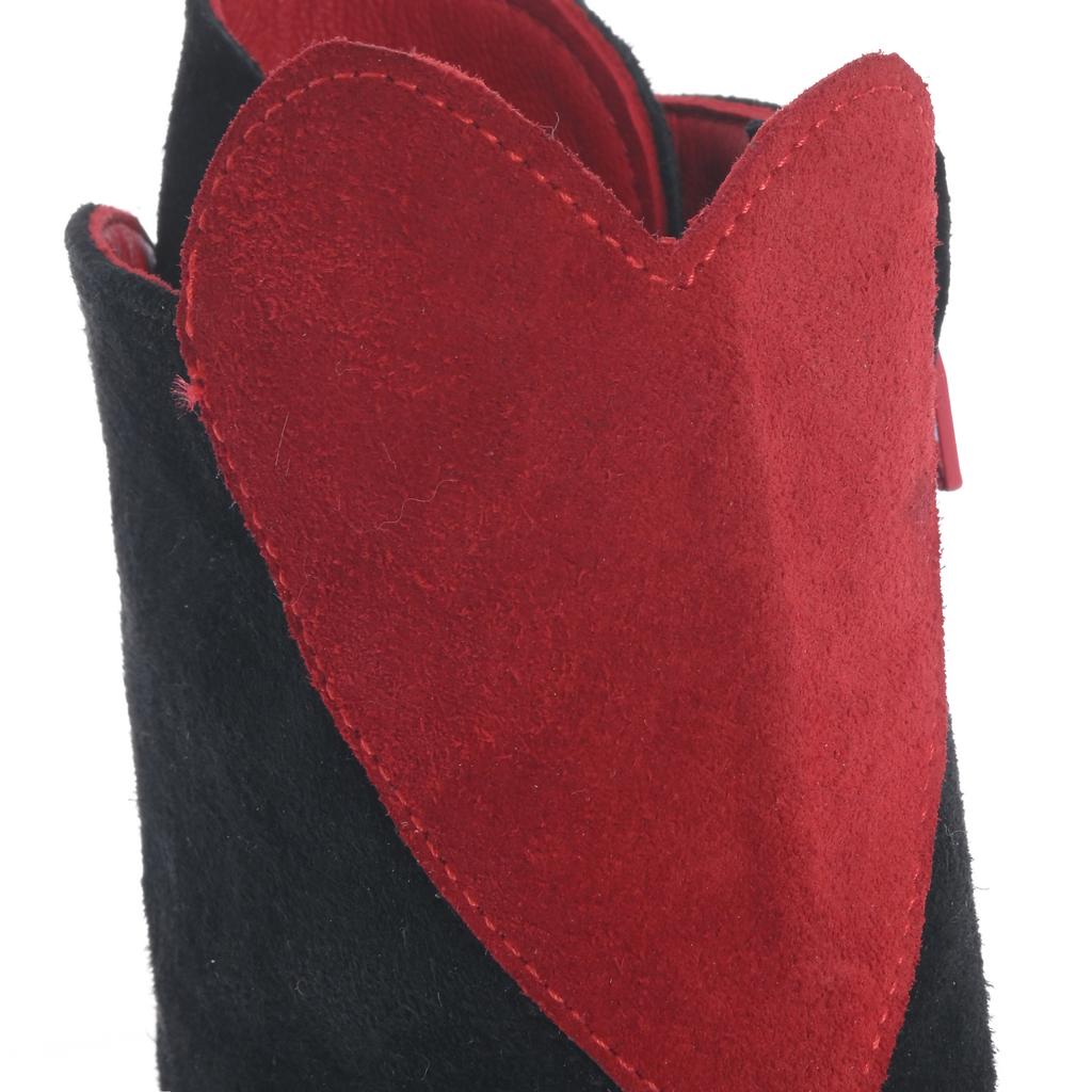 Ghete Larisa din piele intoarsa negru cu rosu
