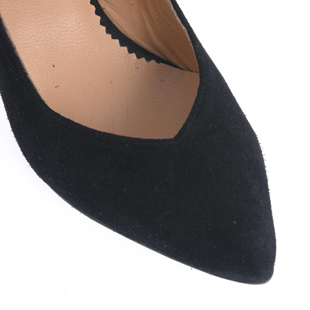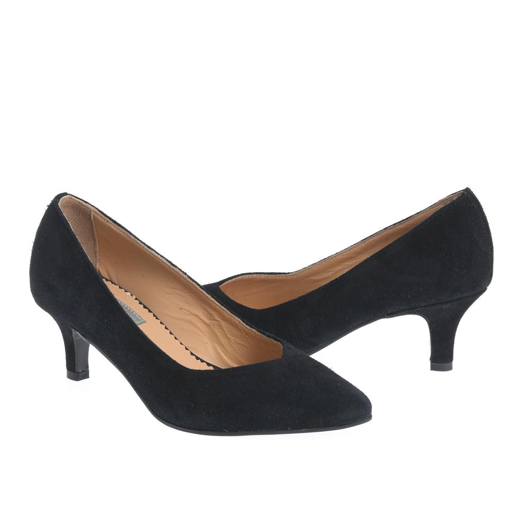 Pantofii Amelia din piele intoarsa neagra sunt alegerea perfecta pentru femeile care doresc un stil elegant si discret. Varful ascutit si tocul kitten joasa confera un aer sofisticat, ideal pentru evenimente formale sau tinute office. Sistemul slip-on permite o incaltare usoara, iar captuseala minimalista cu putina tapiterie ofera un confort placut pe durata purtarii. Talpa subtire, probabil sintetica, este ideala pentru purtare in interior, fara elemente de aderenta suplimentare. Designul simplu si culoarea negru fac ca acest model sa fie usor de asortat cu diverse tinute.