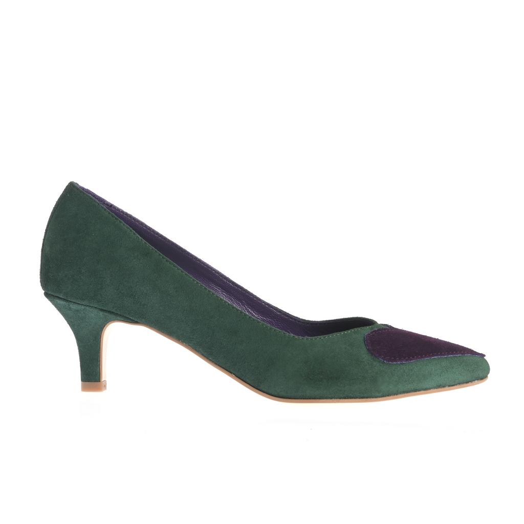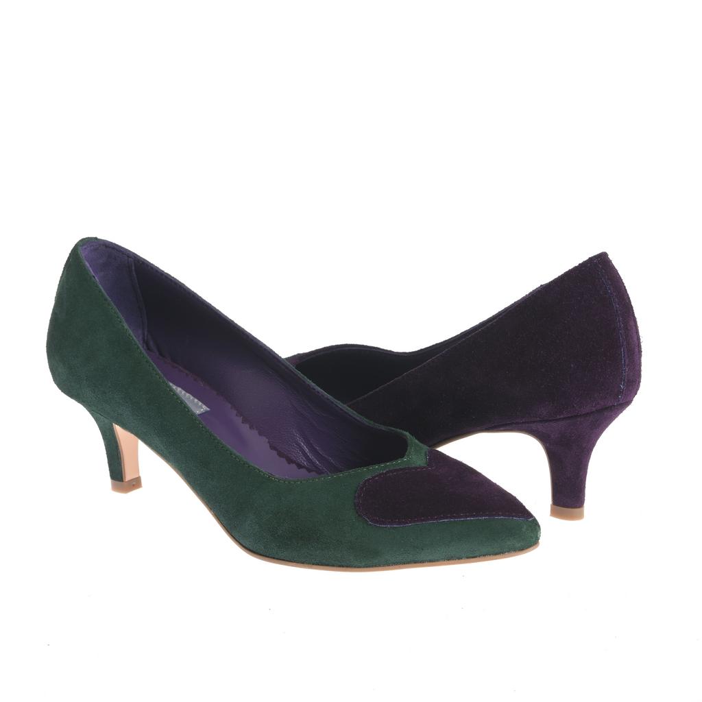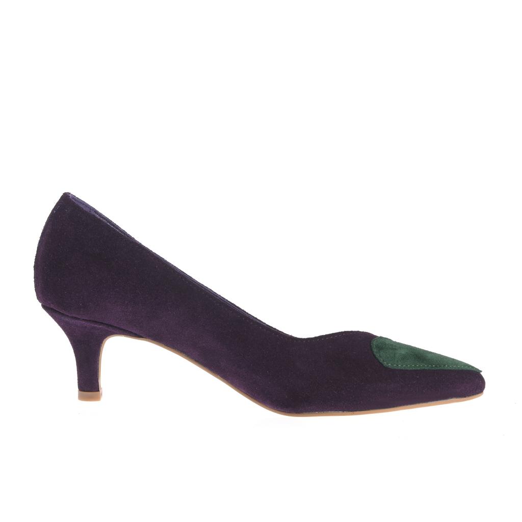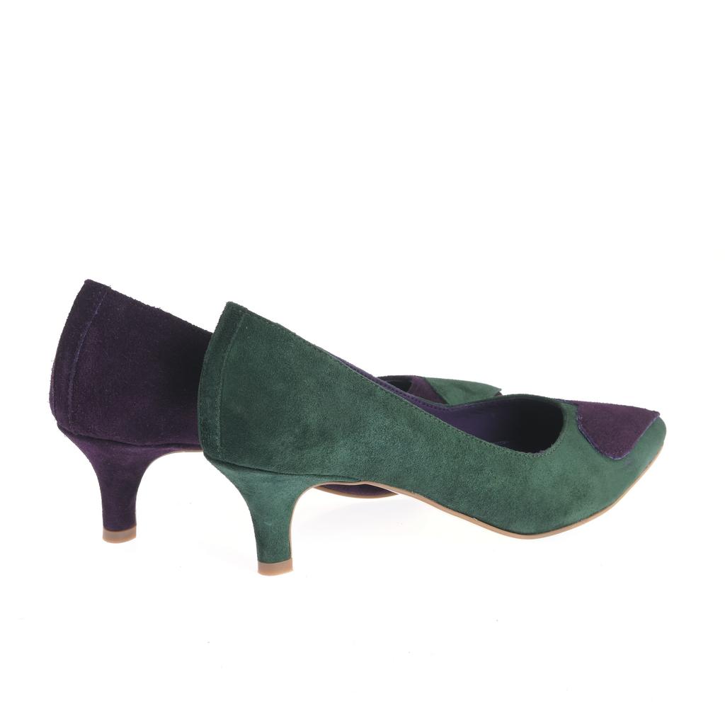 Acești pantofi Maia din piele întoarsă mov sunt alegerea perfectă pentru evenimente fashion unde doriți să impresionați cu stil și rafinament. Talpa subțire din piele combinată cu tocul kitten asigură un confort sporit chiar și după ore întregi de purtare. Inima colorată contrastantă pe vârful pantofului adaugă o notă jucăușă și unică designului elegant. Croiala slip-on conferă o utilizare facilă, iar detaliile cusute vizibile subliniază calitatea execuției. Cu o acoperire joasă a gleznei, acești pantofi sunt practici și stilati, potriviți pentru ținute elegante și moderne.
