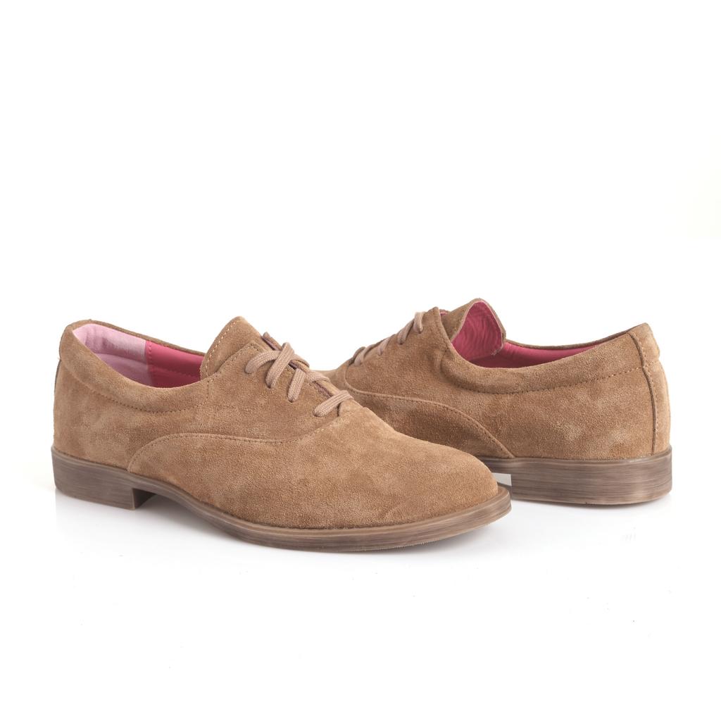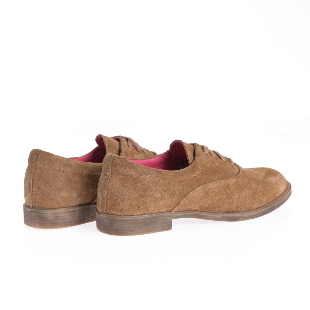 Pantofii Oxford Olga sunt creati pentru confort si stil casual, fiind realizați din piele intoarsa maro de calitate. Dispun de un sistem clasic de inchidere cu siret si o talpa plana din cauciuc, perfecta pentru purtarea zilnica. Tocul jos si forma rotunda a varfului sporesc stabilitatea si eleganta subtila a pantofului. Interiorul roz adauga un detaliu distinctiv fara a compromite aspectul sofisticat, iar designul minimalist fara elemente decorative vizibile completeaza un look clasic, modern. Acesti pantofi sunt ideali pentru tinute casual sau fashion, fara caracteristici speciale de confort sau rezistenta la intemperii, fiind preferati pentru utilizare in situatii urbane si relaxate.