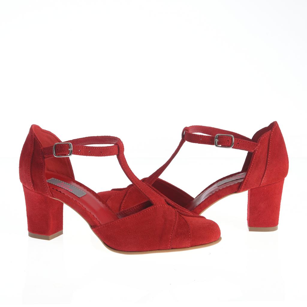 Pantofii Zamfira sunt creați pentru momentele în care stilul și confortul se întâlnesc. Materialul exterior de suede în culoarea roșie vibrantă atrage toate privirile, iar închiderea cu curea și cataramă oferă o fixare sigură. Tocul gros de înălțime medie asigură o susținere stabilă, iar talpa de cauciuc previne alunecarea. Designul cu vârf rotund și cusăturile vizibile adaugă un plus de rafinament și unicitate acestui model de pantofi ideali pentru ocazii fashion.