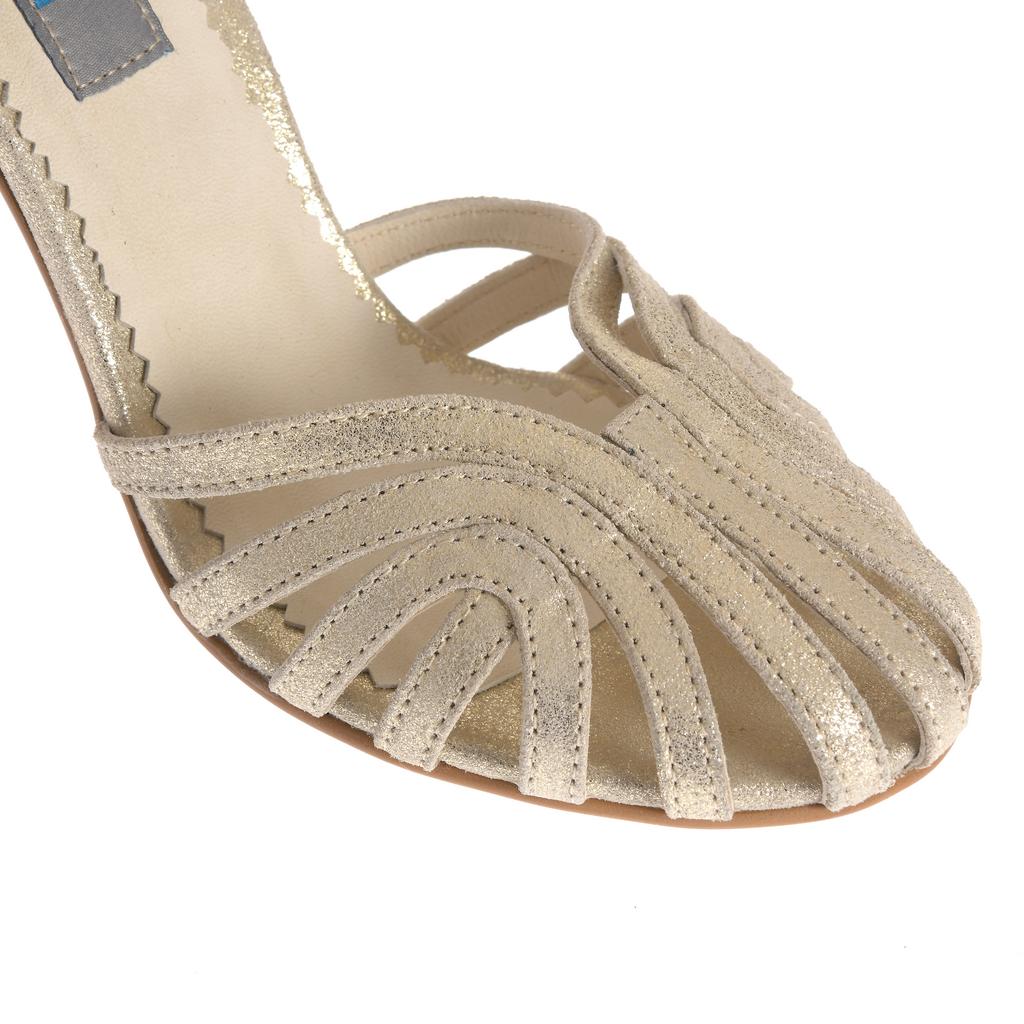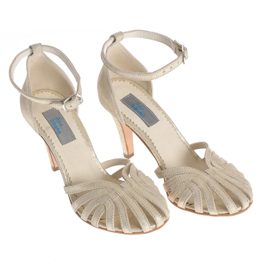 Aceste sandale Aurii cu toc subțire Corina sunt ideale pentru ocazii speciale și evenimente de seară, datorită designului lor sofisticat și detaliilor strălucitoare. Partea superioară este realizată din material sintetic cu finisaj glitter, iar închiderea cu bretea și cataramă la gleznă asigură o susținere confortabilă. Branțul ușor căptușit oferă un plus de confort, iar talpa subțire și netedă completează aspectul elegant. Designul deschis și multiplele curele amplifică senzația de aerisire, făcând aceste sandale un accesoriu șic și rafinat pentru ținutele formale.